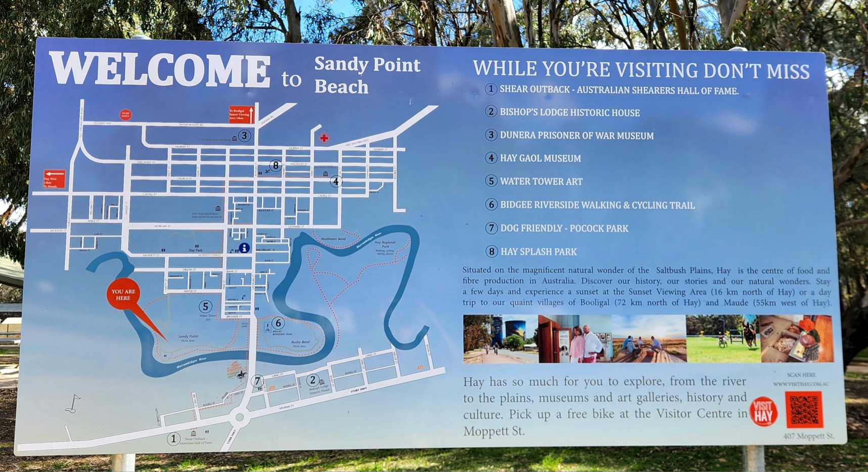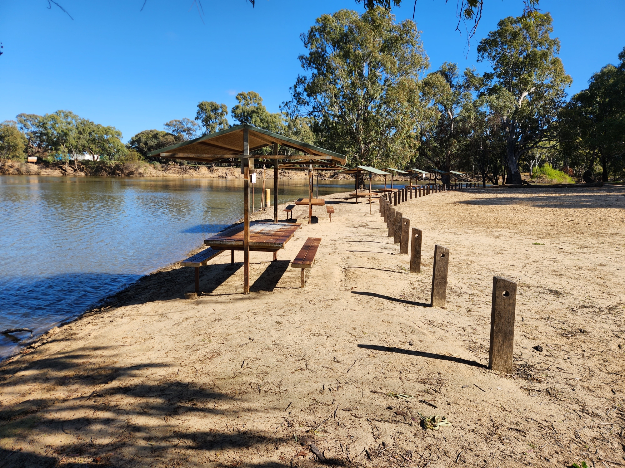 If you are looking to go for a swim, put in a boat or throw in a line this is the spot to stop and camp. Take a walk around the all weather tracks that hug the Murrumbidgee and encompass the mighty river red gums. There is free BBQs and flush toilets with $2 showers at the Visitor Centre in Moppett ST.